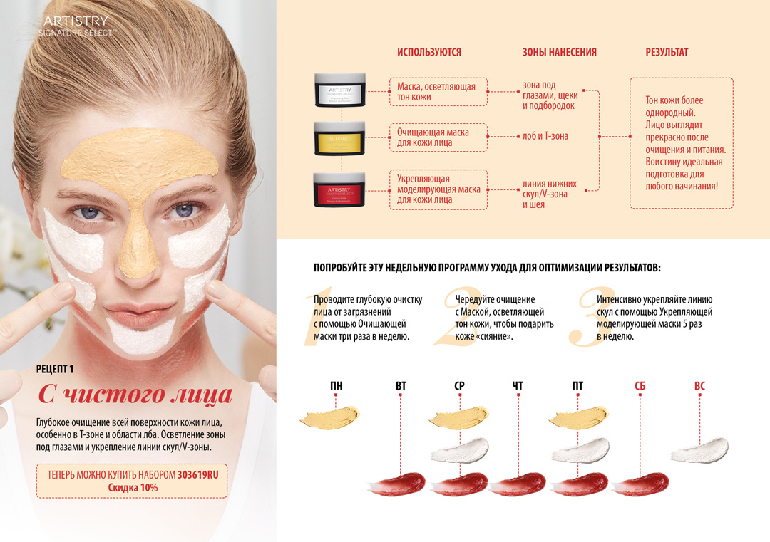 Мы предлагаем проводить мультимаскинг два раза в неделю, делая перерыв в один-два дня. Например, вторник и четверг: первый день дает нам силы на первую половину недели, а второй готовит к выходным. Но, само собой, решение остается за вами или вашим клиентом.