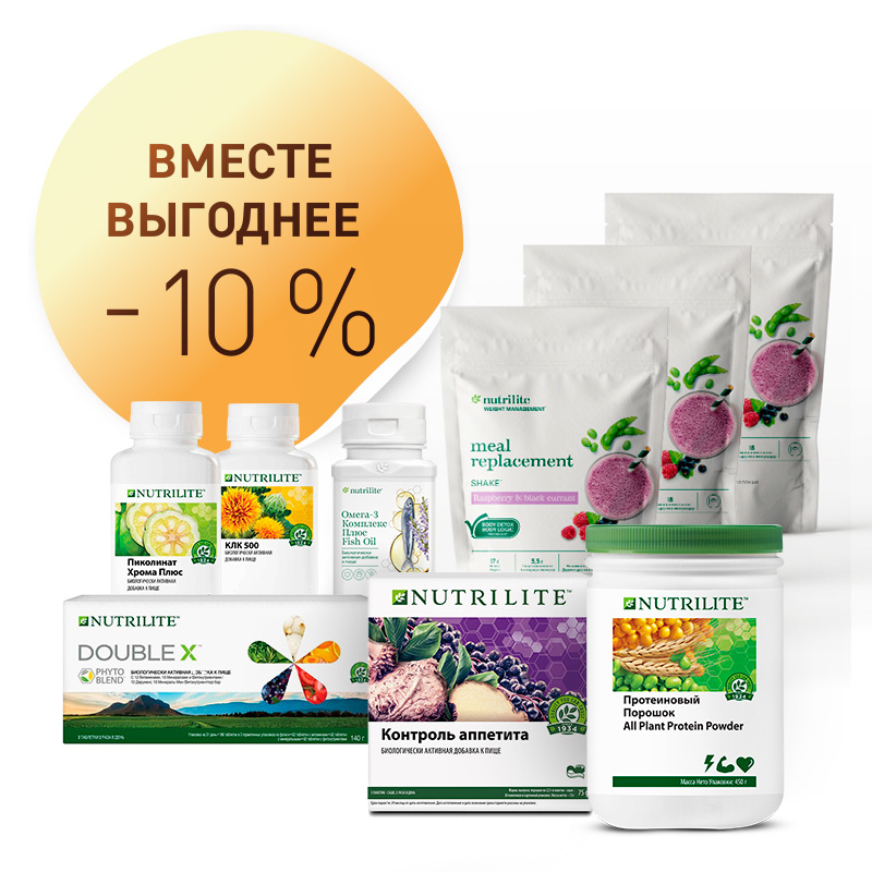 Набор Оптимальное снижение веса программы Body Guru: Привычка быть стройным от Nutrilite™ — программа направлена на активное похудение и поддержание веса через контроль калорий и количества потребляемого полноценного белка.